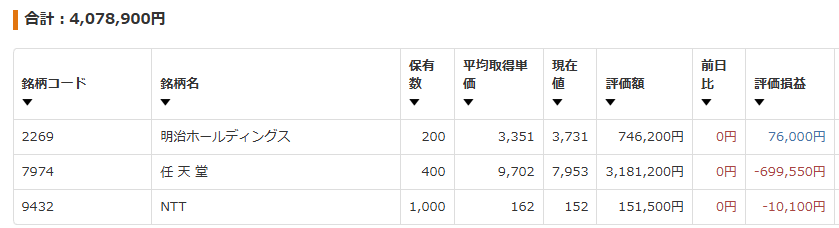 まずは全体の数字から。現在の評価額合計は以下の通りです。